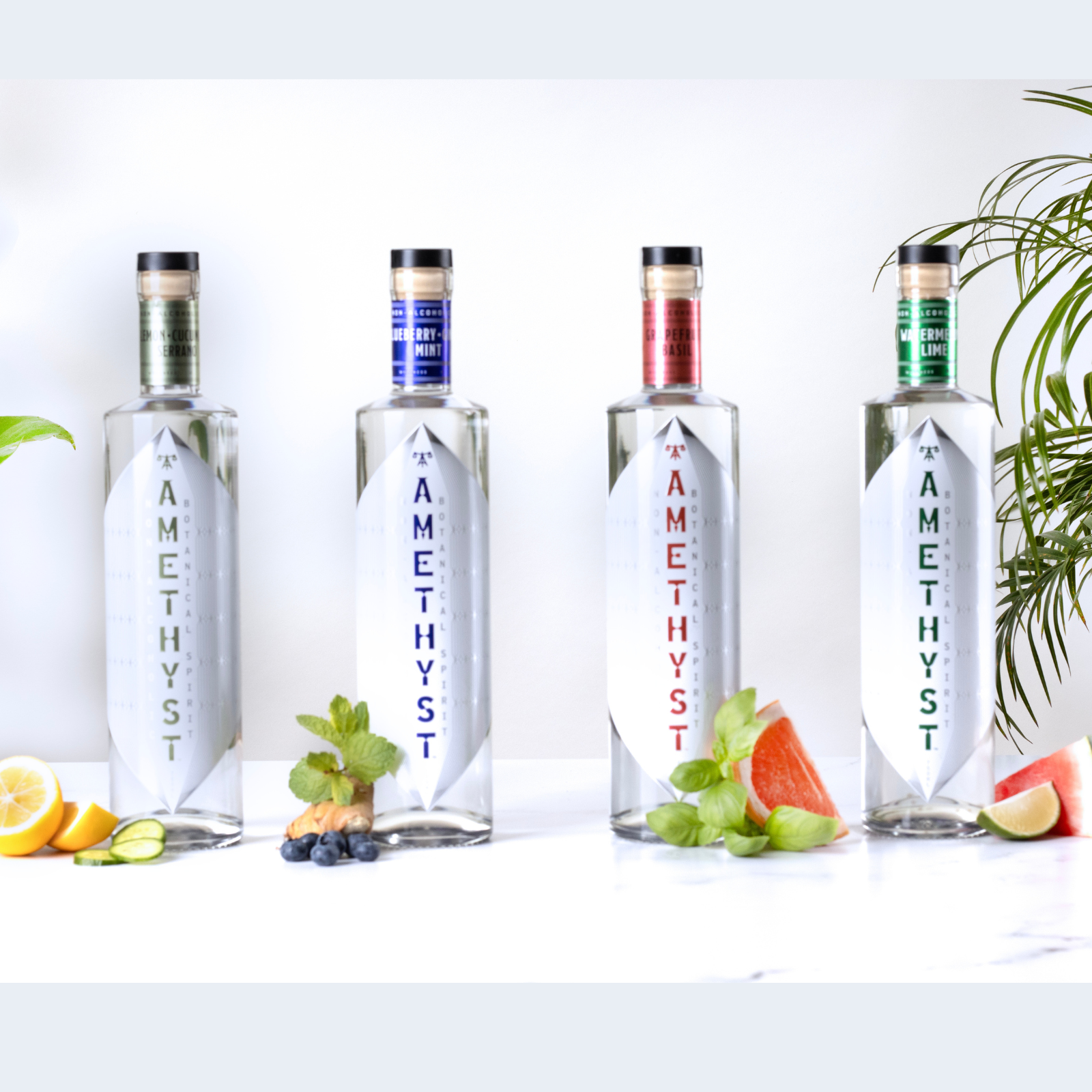 Amethyst Blueberry Ginger Mint is a bold, botanical spirit designed for those who seek clarity without compromise. Juicy wild blueberries unfold into warming notes of ginger root, finished with a bright touch of mint that lingers with cooling elegance. This zero-proof pour was crafted for the mindful modernist—an inspired base for cocktails or an expressive sip on its own.